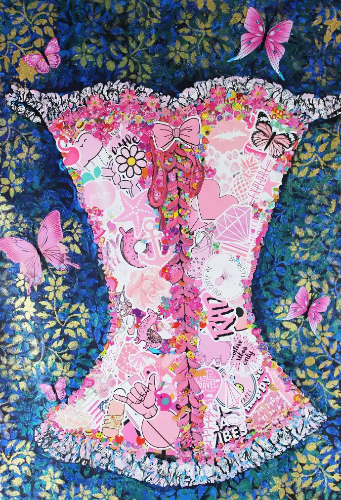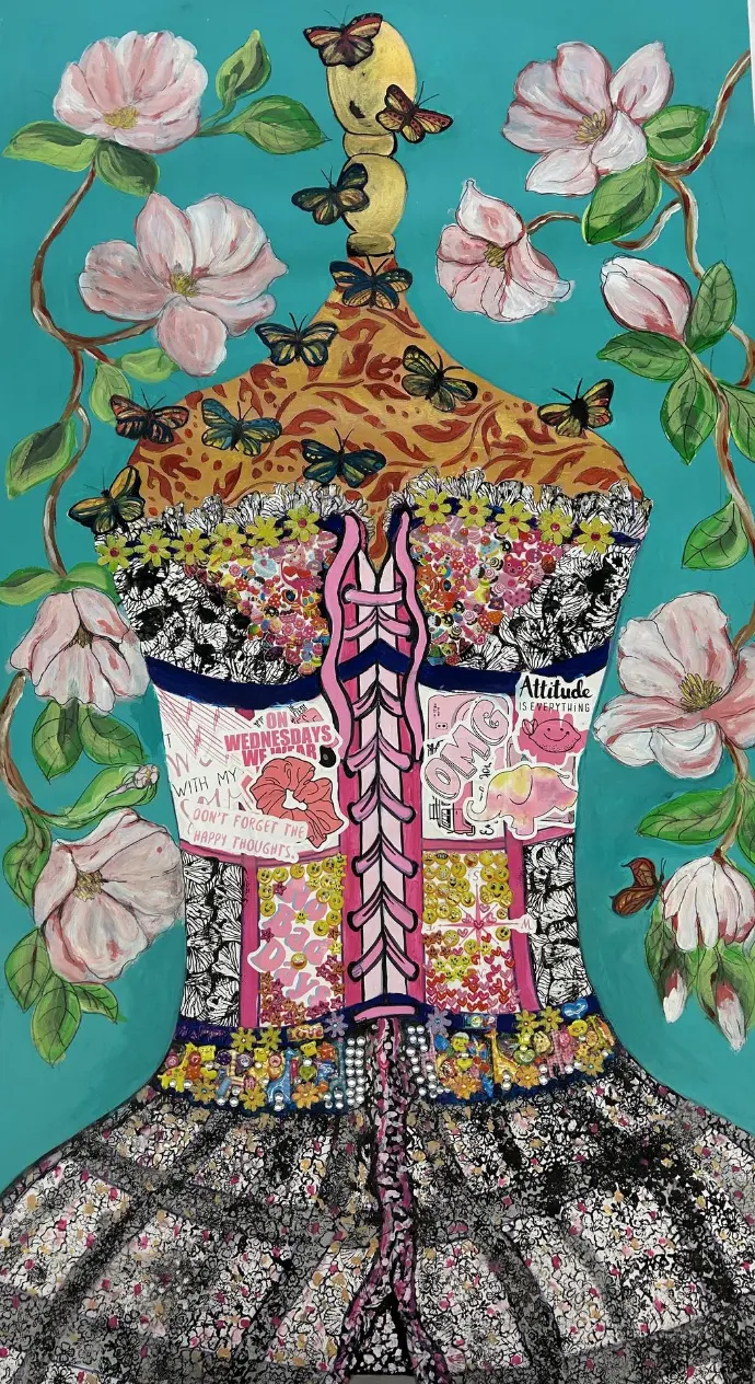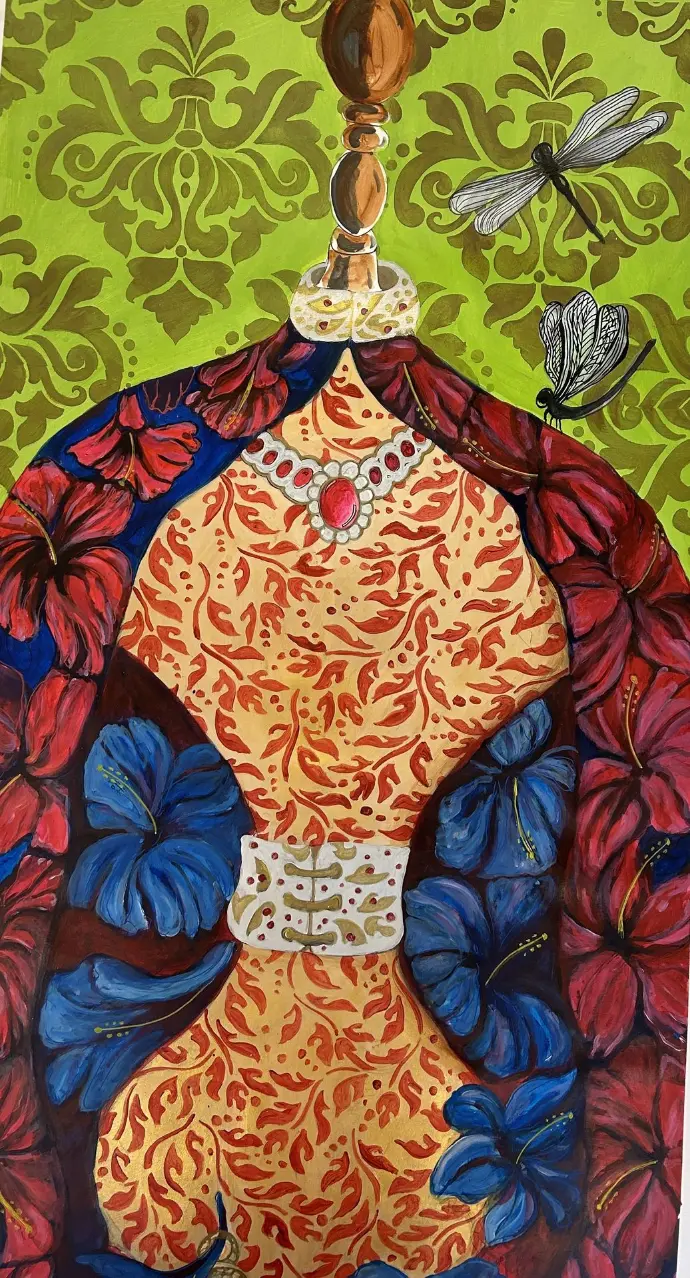 In these works, I revisit her presence, exploring our relationship, her artistry, and her eventual decline from Parkinson’s disease. The wooden mannequin stands in for her absence, while the maximalist imagery becomes an ode to her abundance. The series continues to evolve, with new pieces added over time - a living metaphor for my own journey of finding and losing her through the process of making art.
