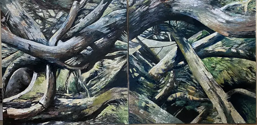 I see these works as more than records of place, the moss on bark, the grooves of dead trees, and the changing hues of the seasons become visual metaphors for transition and transformation. A visceral reminder that all life is bound by the cyclical nature of change.