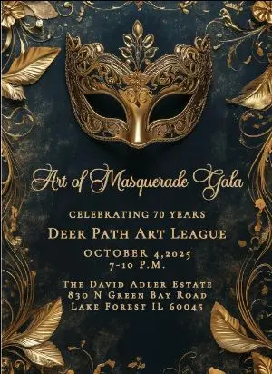 The Deer Path Art League held its annual fundraising event themed "Art of Masquerade," at the historic Adler Estate in Lake Forest. For this signature event, I transformed one of my old paintings into a dress, paired with a floral headdress and mask I designed and created myself. As a Board Member, it was a joyful way to merge creativity, art and fashion — bringing the spirit of masquerade to life through art.