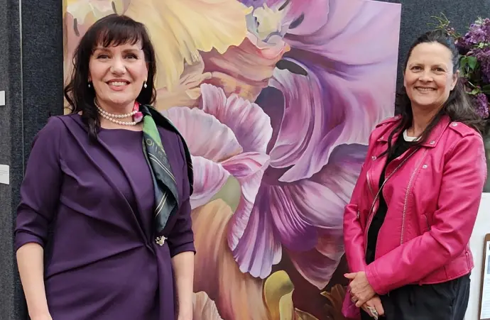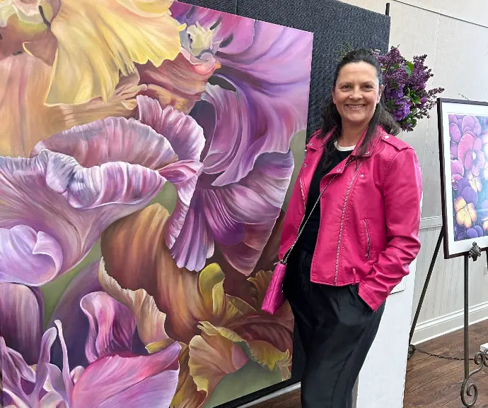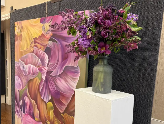 In this fundraising event hosted by the Deer Path Art League, art, fashion, and flowers came together in a vibrant celebration of creativity. Curated works by DPAL members were paired with floral designs by local florists, forming the backdrop to a fashion show featuring Spring and Summer collections from local boutiques. My painting Purple Dreams was selected for the exhibition and featured on the event show card.